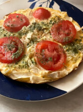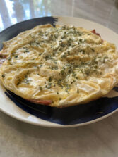 Лаваш свернуть рулетом и нарезать на широкую лапшу, примерно по 1 см. Яйца посолить и взбить с молоком. Добавить туда тертый сыр. Сковороду с маслом хорошо разгреть. Выложить туда лаваш, посыпать нарезанной зеленью. При желании можно добавить нарезанные мелко колбасу или ветчину, сосиски, помидор. Залить все яичной смесью. Cверху можно положить круги помидоров. С закрытой крышкой довести до готовности на медленном огне, минут 10.
